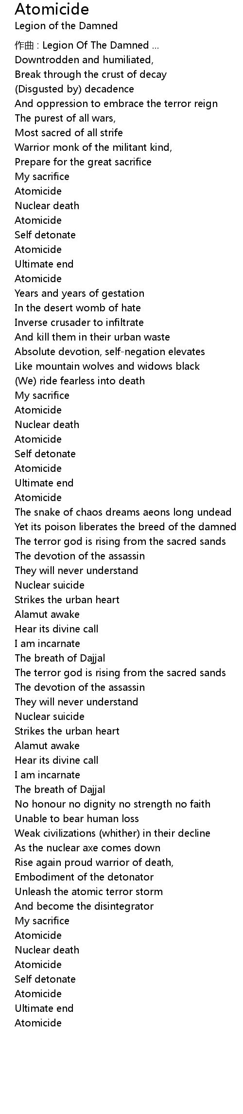 | 歌曲 | Atomicide |