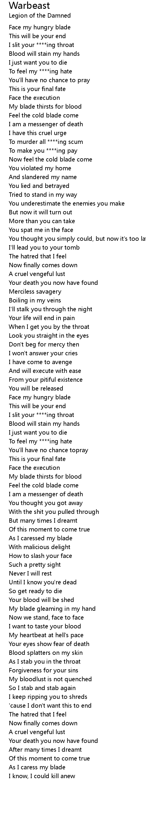 Warbeast 歌词