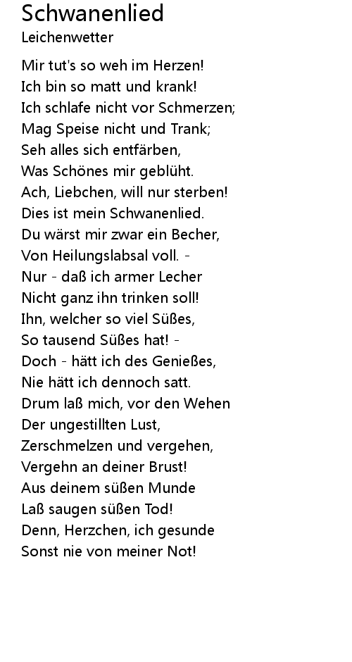 | Dies ist mein Schwanenlied. | |
