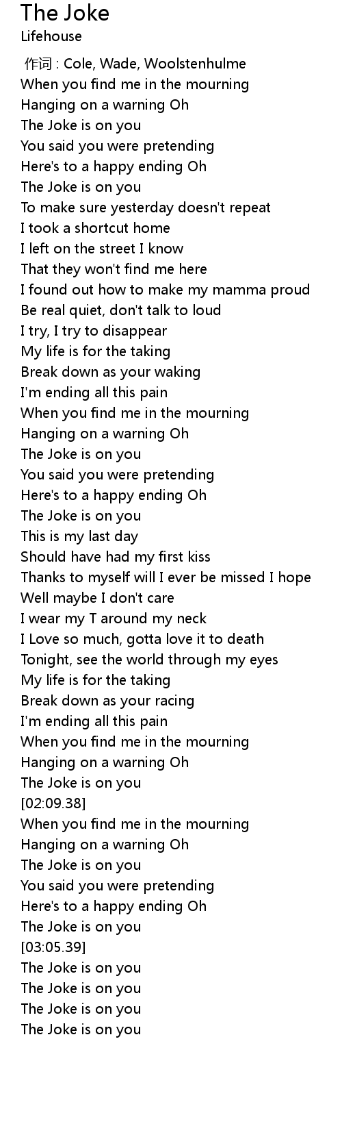| [03:08.83] | The Joke is on you |