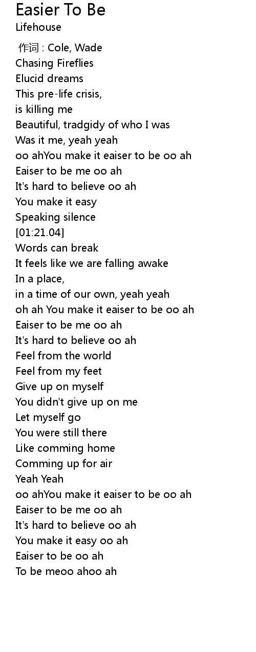 | [02:41.21] | oo ahYou make it eaiser to be oo ah |