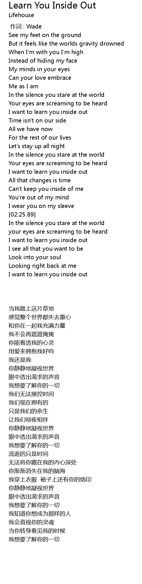 | [03:02.27] | I want to learn you inside out |