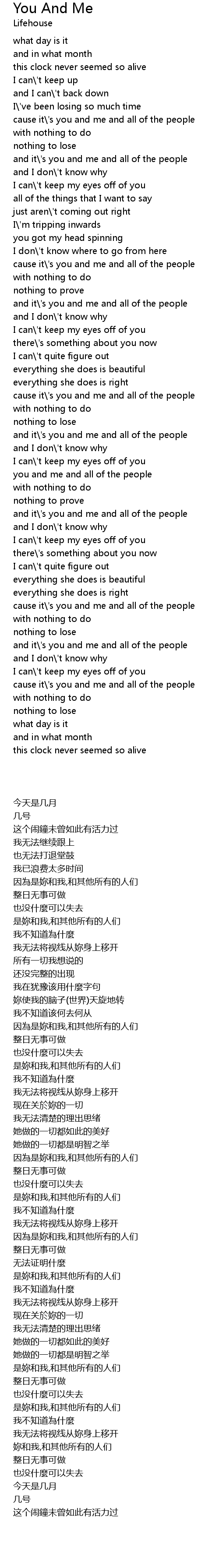 cause it\'s you and me and all of the people |