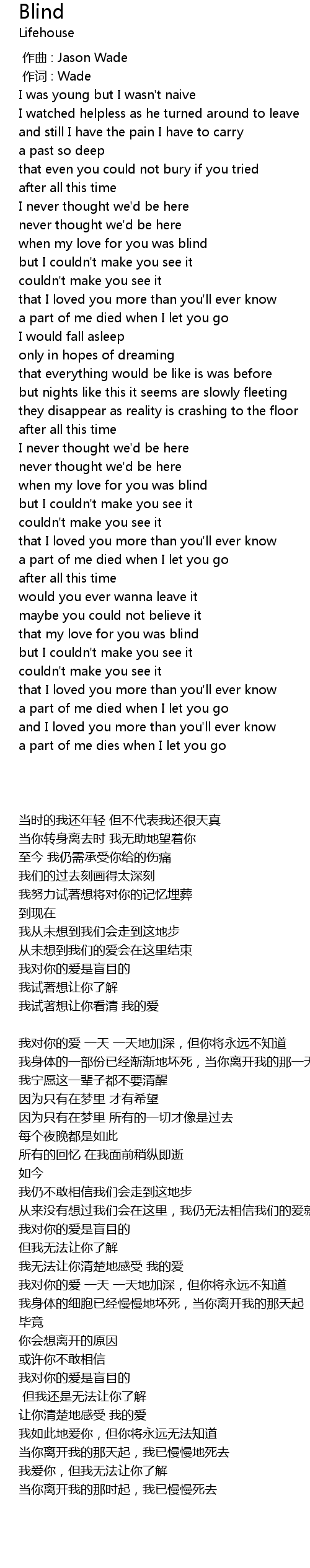 | 歌曲 | Blind |