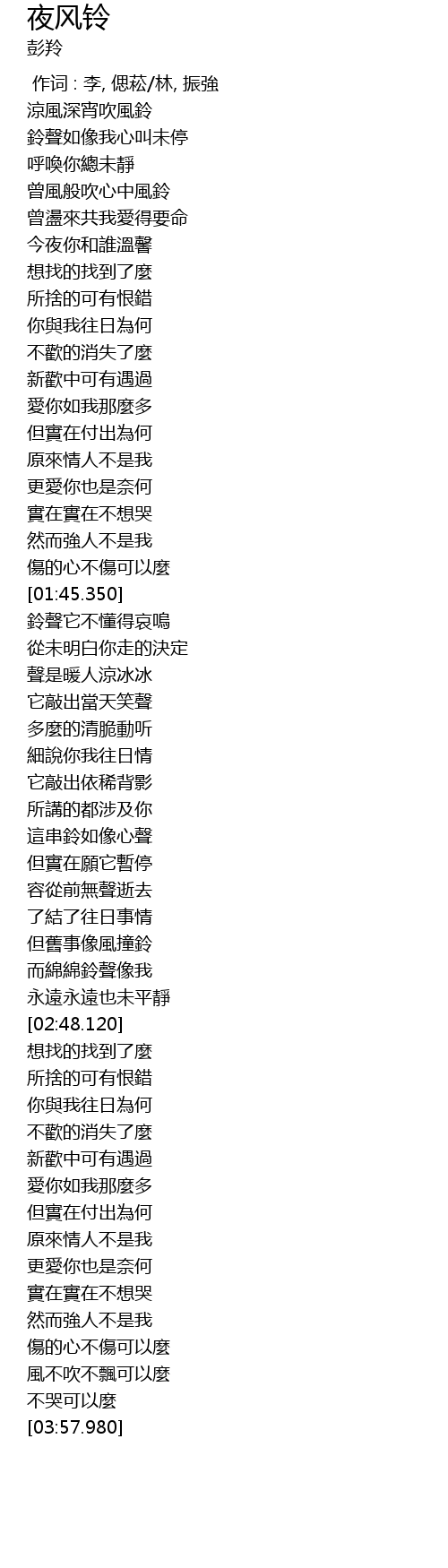 | [00:32.259] | 鈴聲如像我心叫未停 |
