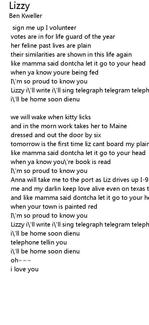 Lizzy i\'ll write i\'ll sing telegraph telegram telephone tellin you |