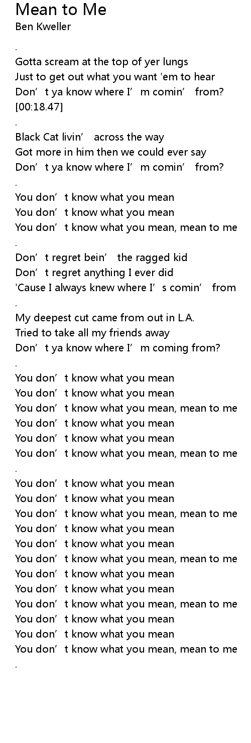| [00:43.49] | You don' t know what you mean, mean to me |