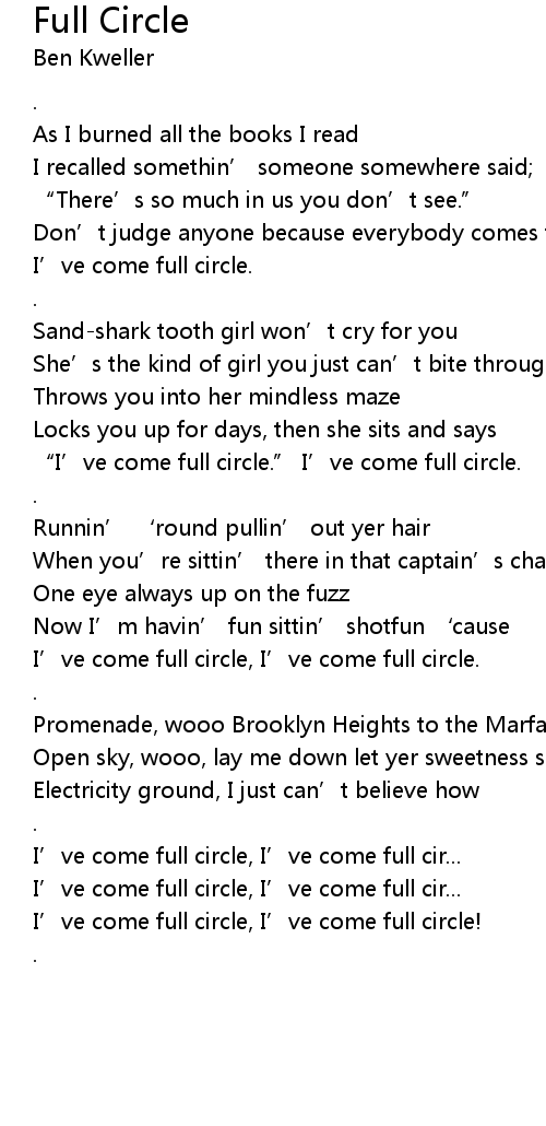 | [01:17.39] | " I' ve come full circle." I' ve come full circle. |