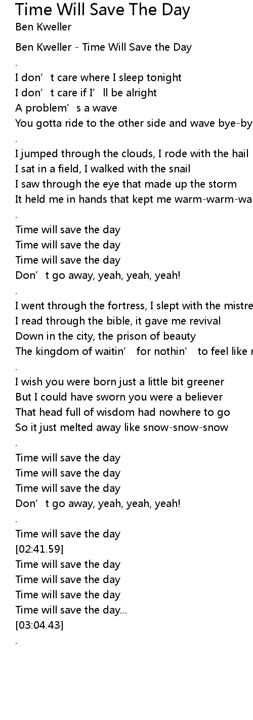 | [00:00.23] | Ben Kweller Time Will Save the Day |