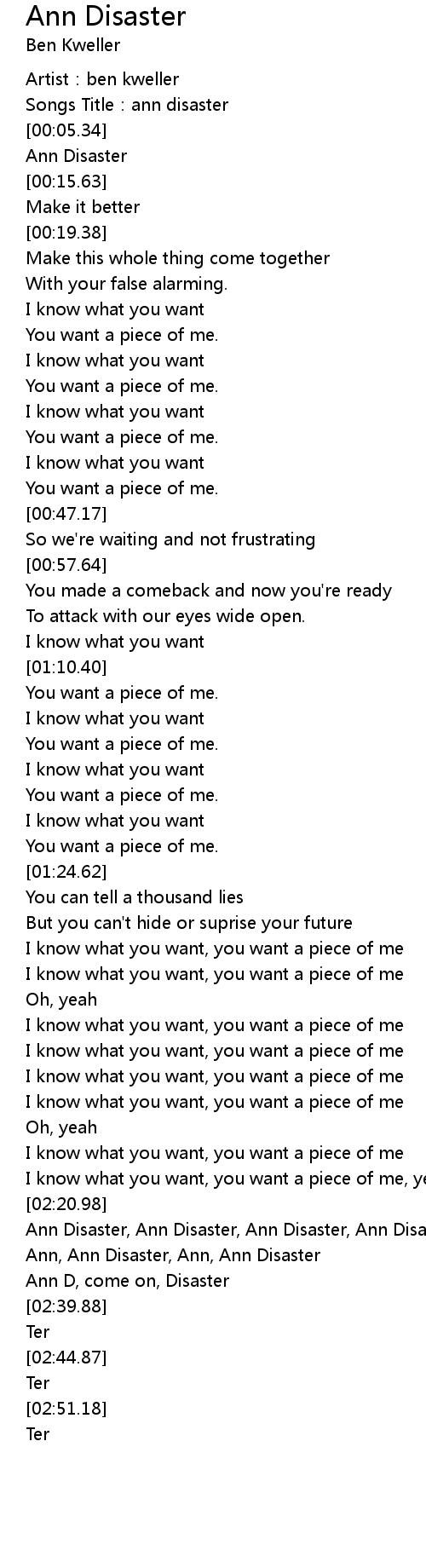 | [02:30.33] | Ann, Ann Disaster, Ann, Ann Disaster |