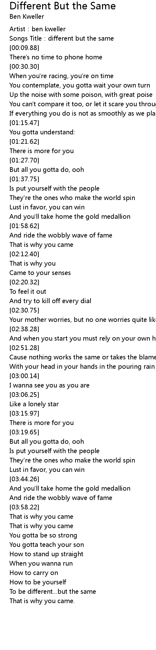 | [04:18.73] | To be different...but the same |