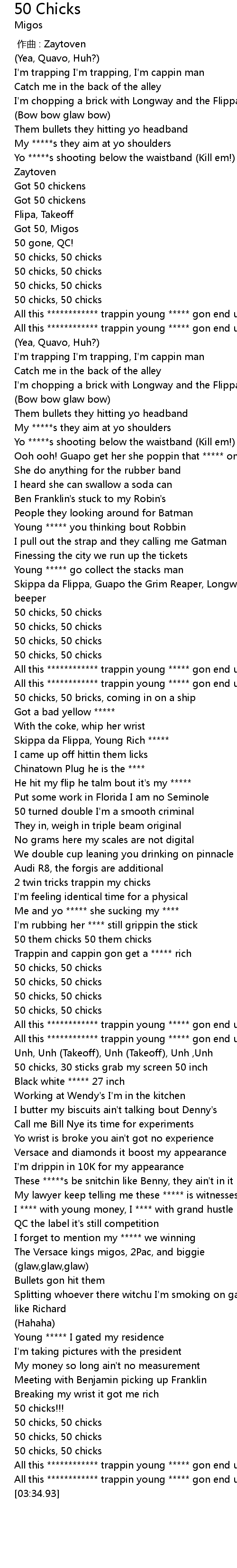 | [02:15.75] | 50 them chicks 50 them chicks |