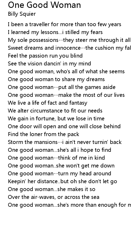 One good woman...she's all i hope to find |
