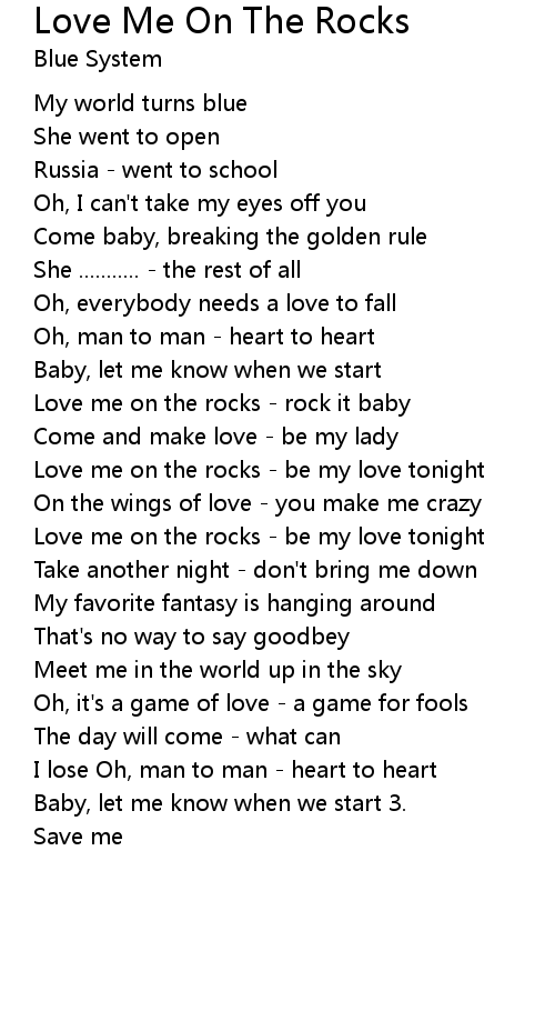 Love me on the rocks - be my love tonight |