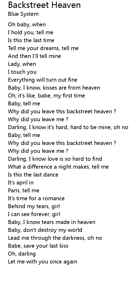 Why did you leave this backstreet heaven ? |