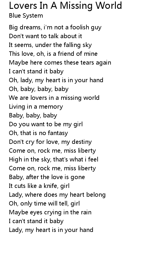 We are lovers in a missing world |