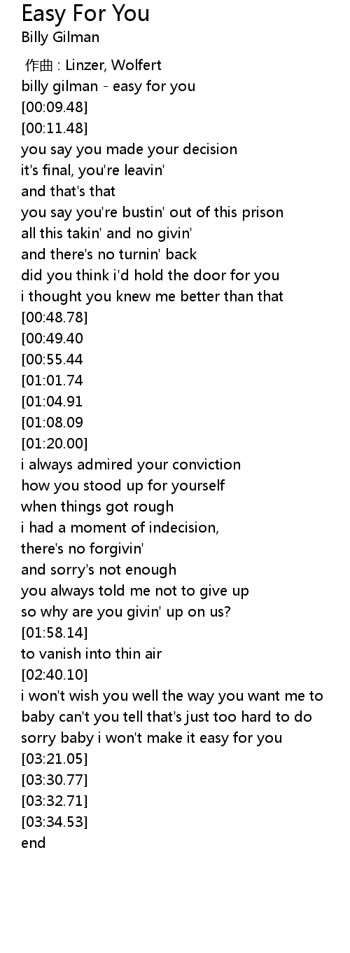 | [02:17.73][01:08.09] | sorry, baby i won' t make it easy for you |