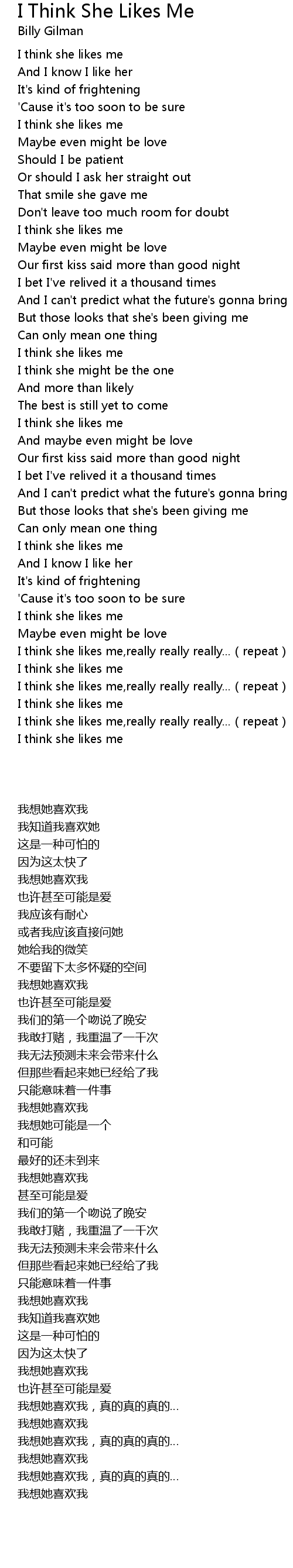 | [02:40.520] | I think she likes me,really really really...(repeat) |