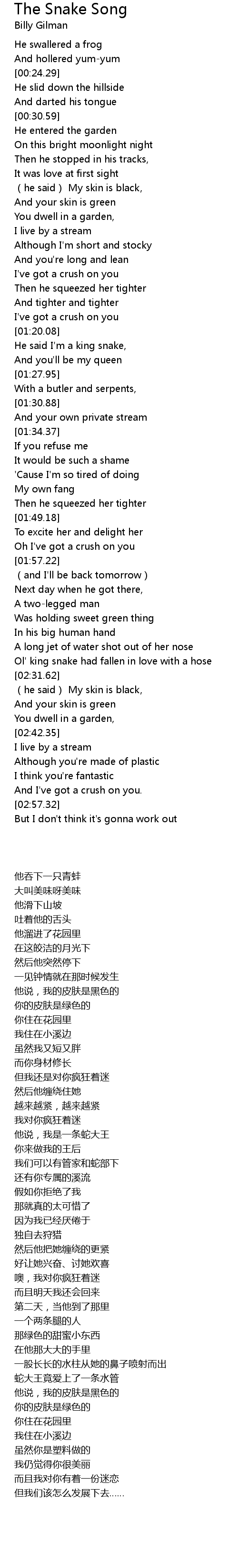 | 歌曲 | The Snake Song |