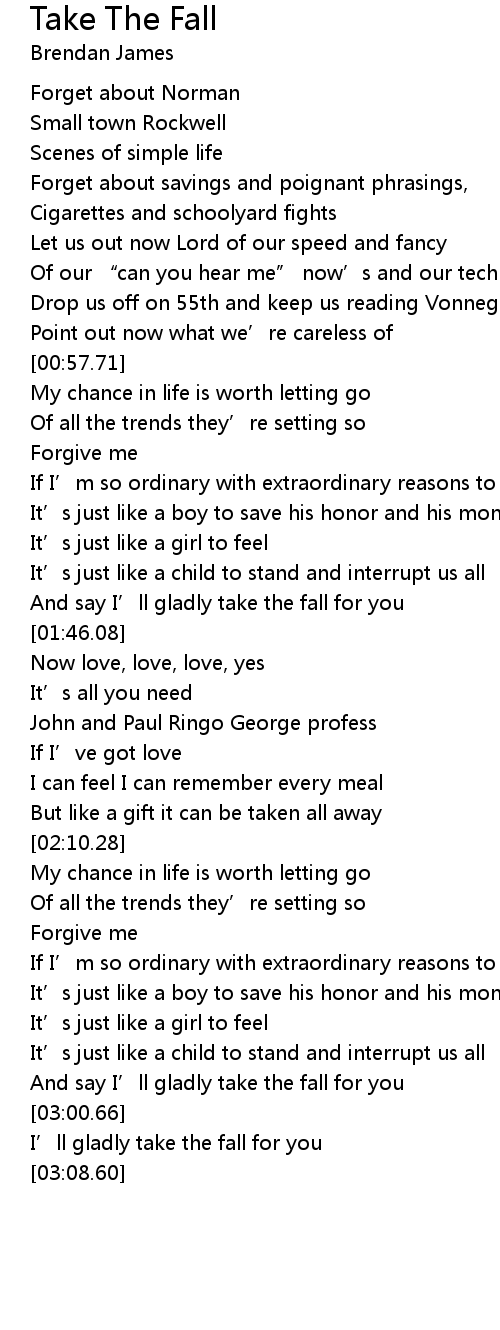 | [02:53.68] | And say I’ll gladly take the fall for you |