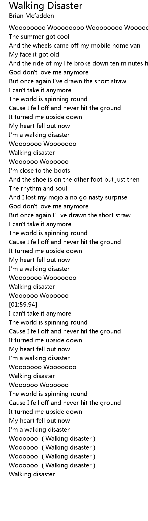 | [01:00.06] | Walking disaster |