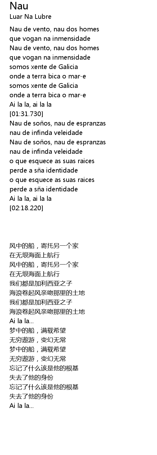 | [01:45.990] | Nau de soños, nau de espranzas |