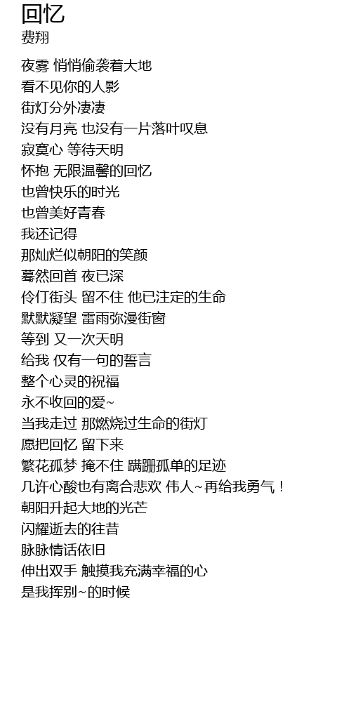 | [02:13.61] | 当我走过 那燃烧过生命的街灯 |