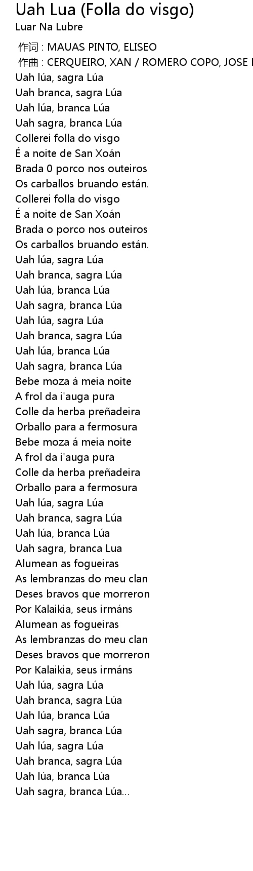 | 歌曲 | Uah Lua (Folla do visgo) |