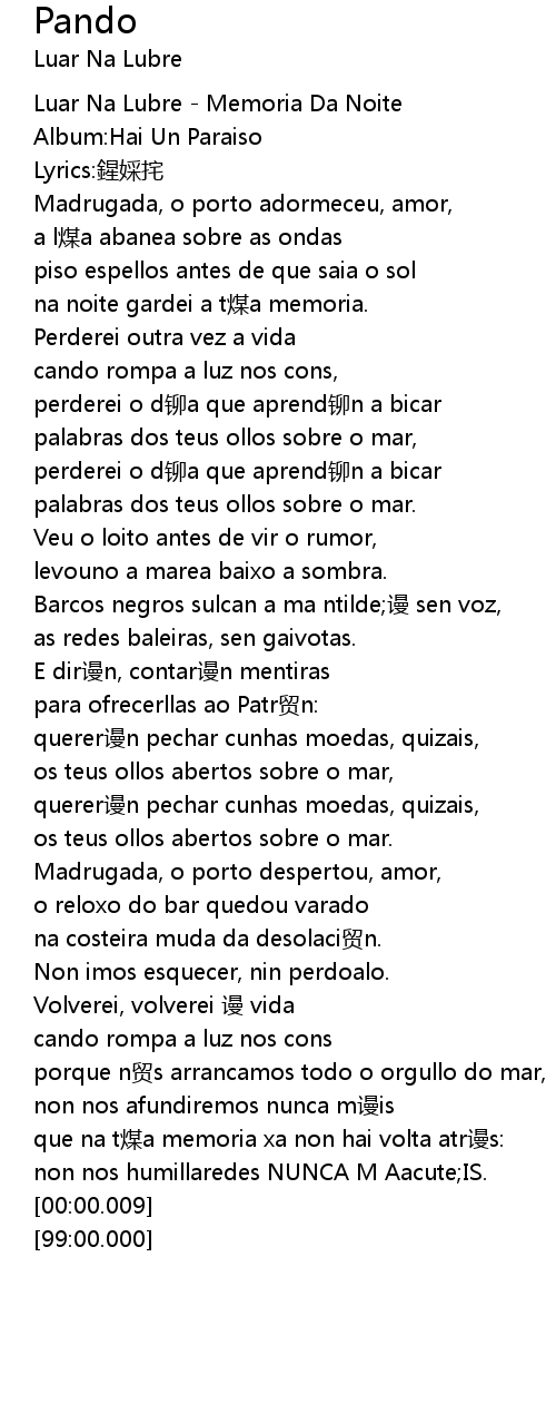 | [01:00.03] | Luar Na Lubre Memoria Da Noite |