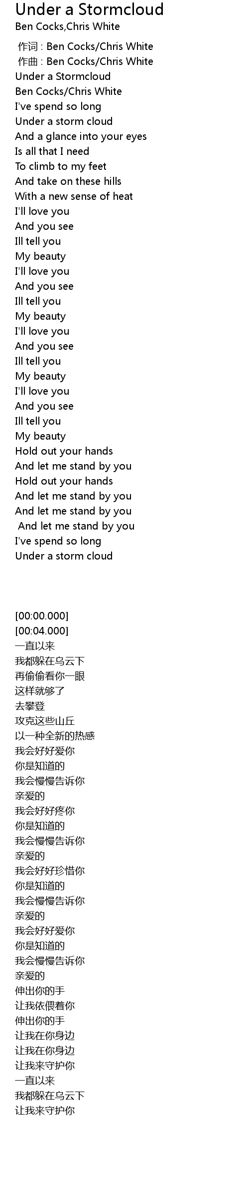 | [00:00.000] | Under a Stormcloud |