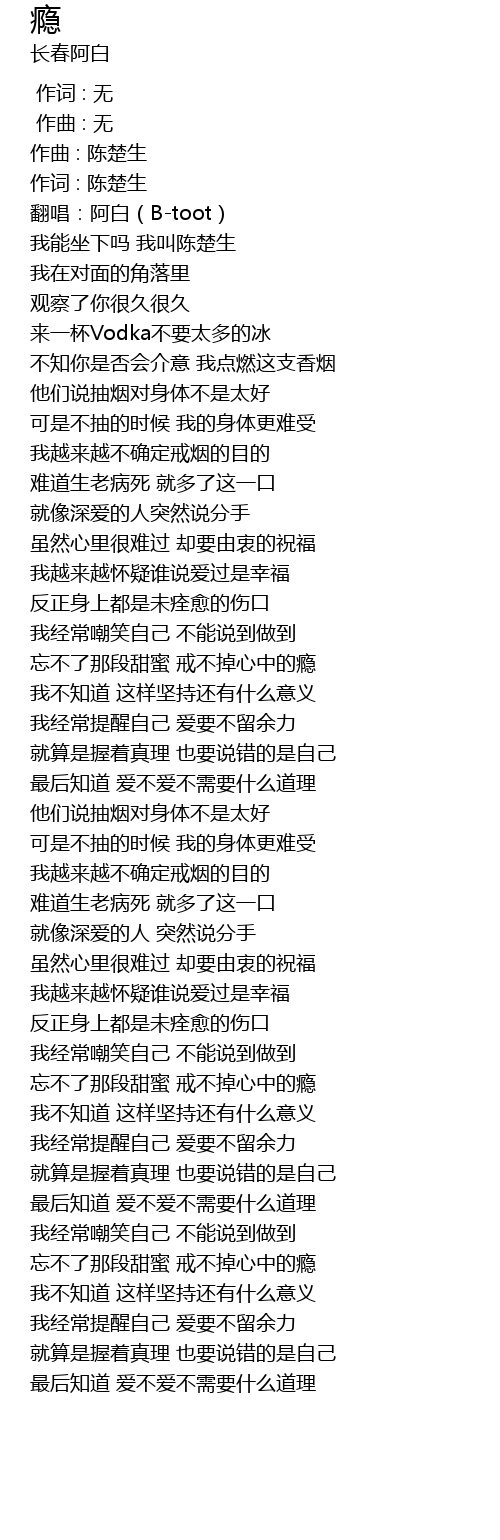 | [02:52.693] | 忘不了那段甜蜜 戒不掉心中的瘾 |