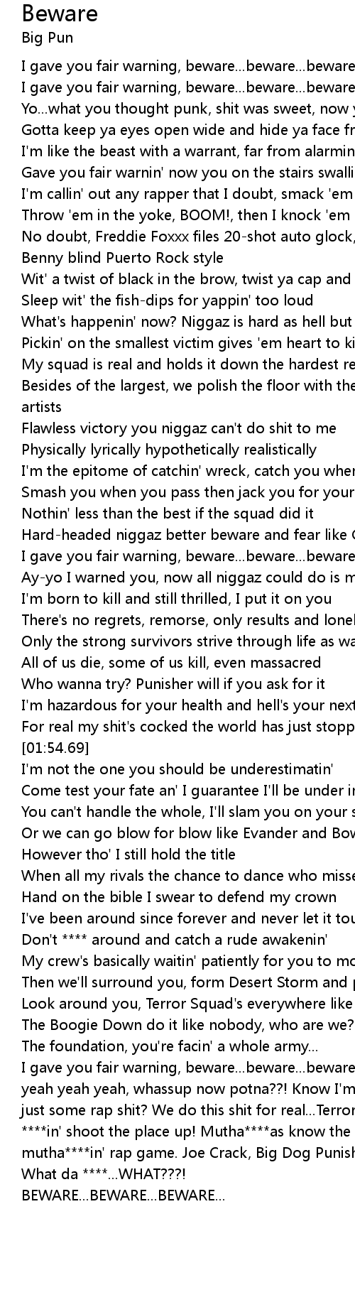 [01:15.17] I gave you fair warning, beware...beware...beware...