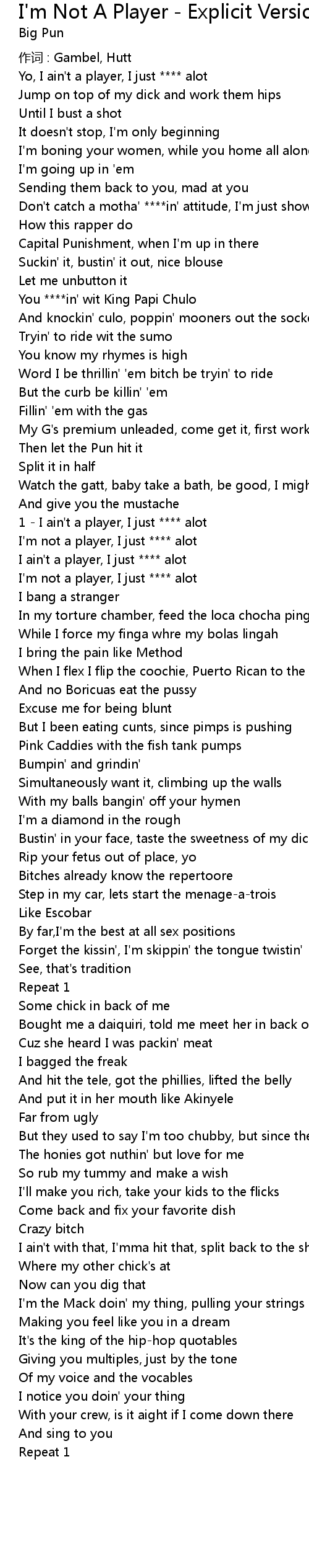 | 歌曲 | I'm Not A Player - Explicit Version |