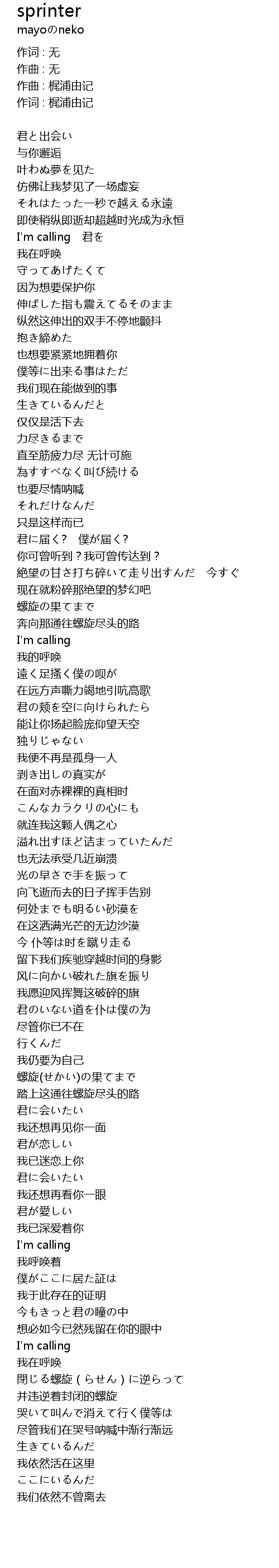 sprinter 歌词