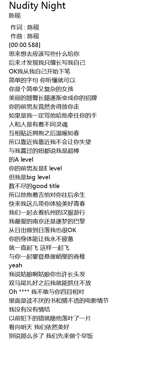 | [01:14.697] | Oh **** 我不敢与你四目相对 |