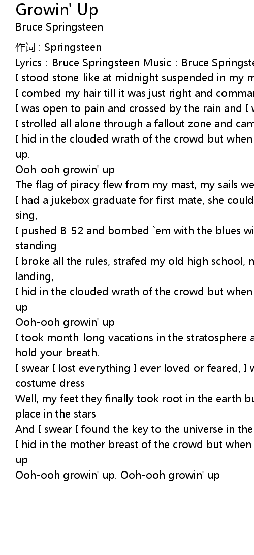 | Ooh-ooh growin' up. Ooh-ooh growin' up |