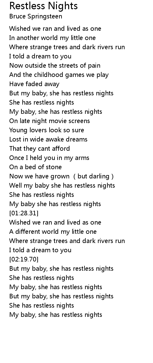 | [02:49.26] | But my baby, she has restless nights |