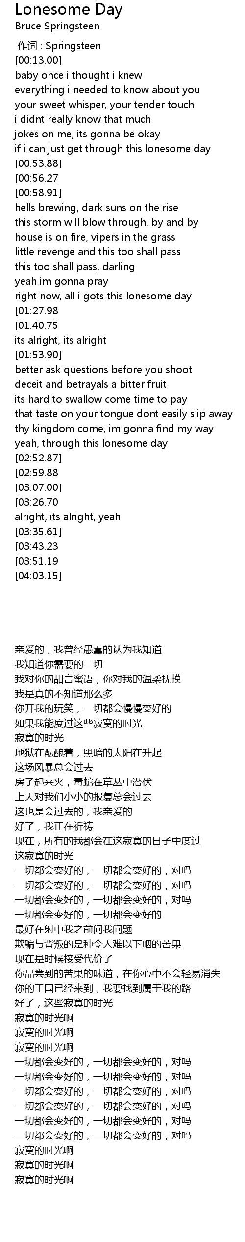 | [03:47.57][03:43.23][03:38.98] | lonesome day |