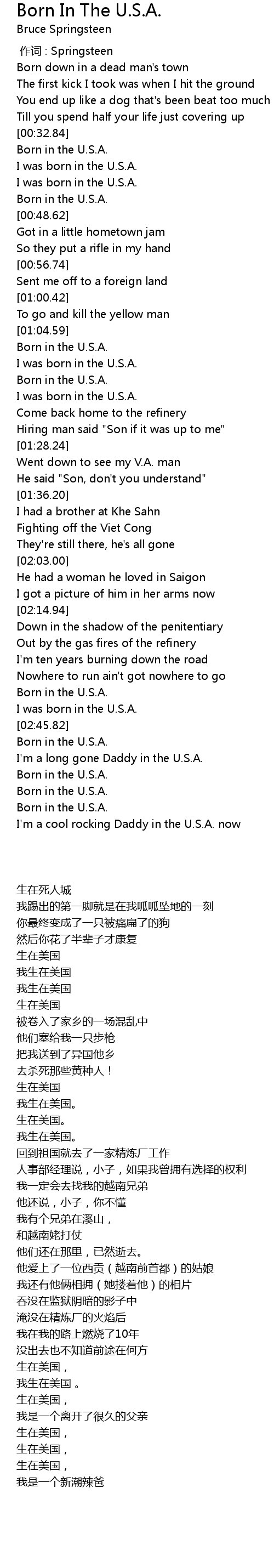 | [02:49.64] | I'm a long gone Daddy in the U.S.A. |