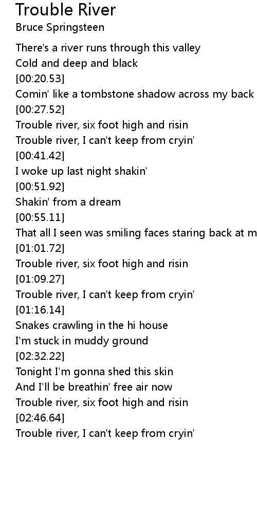 Trouble river, six foot high and risin |