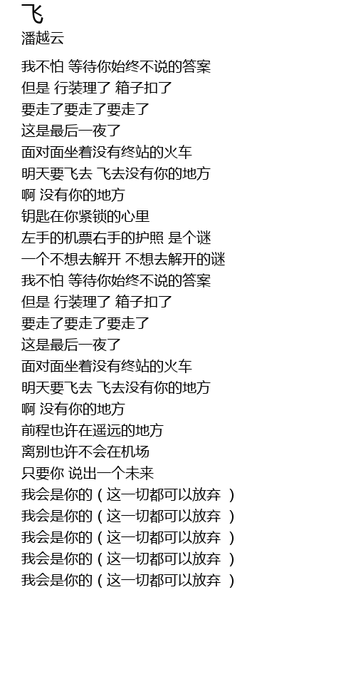 | [02:17.31] | 明天要飞去 飞去没有你的地方 |