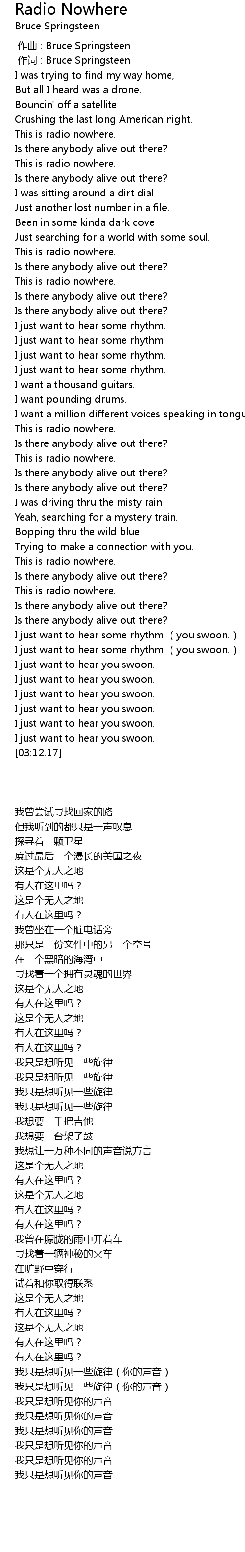 | [00:01.00] | zuò cí : Bruce Springsteen |