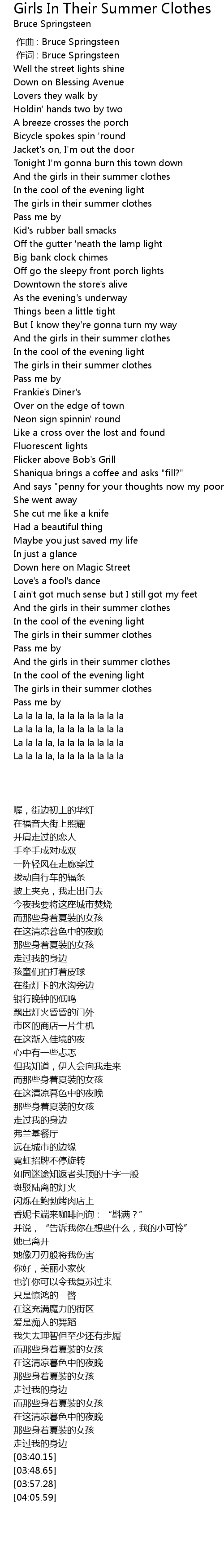 | [00:01.00] | 作词 : Bruce Springsteen |