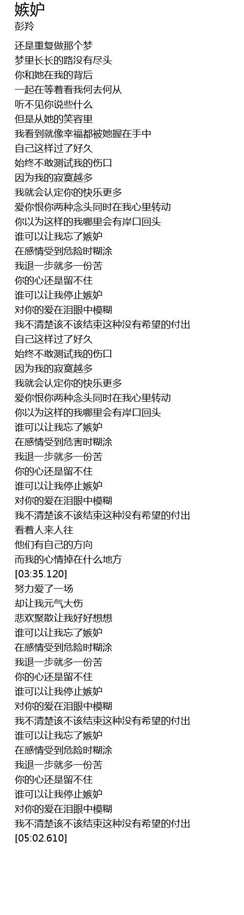 | [03:04.580] | 谁可以让我停止嫉妒 |