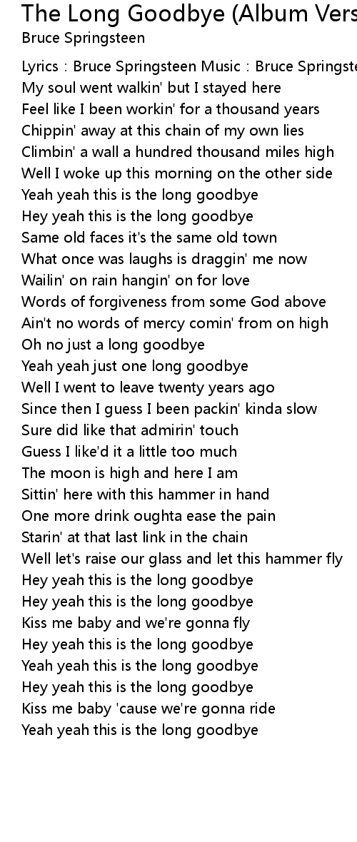 | Yeah yeah this is the long goodbye |