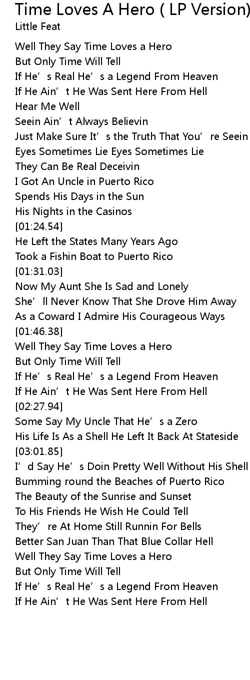 | [03:25.04] | Well They Say Time Loves a Hero |