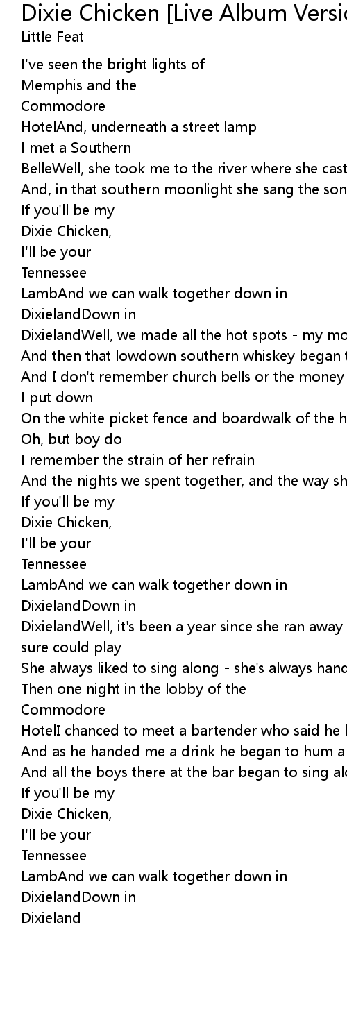 DixielandWell, it's been a year since she ran away - guess that guitar player sure could play |