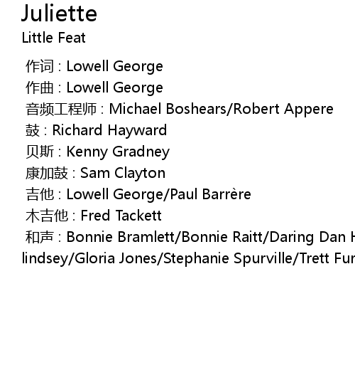 | [00:00.000] | 吉他 : Lowell George/Paul Barrère |