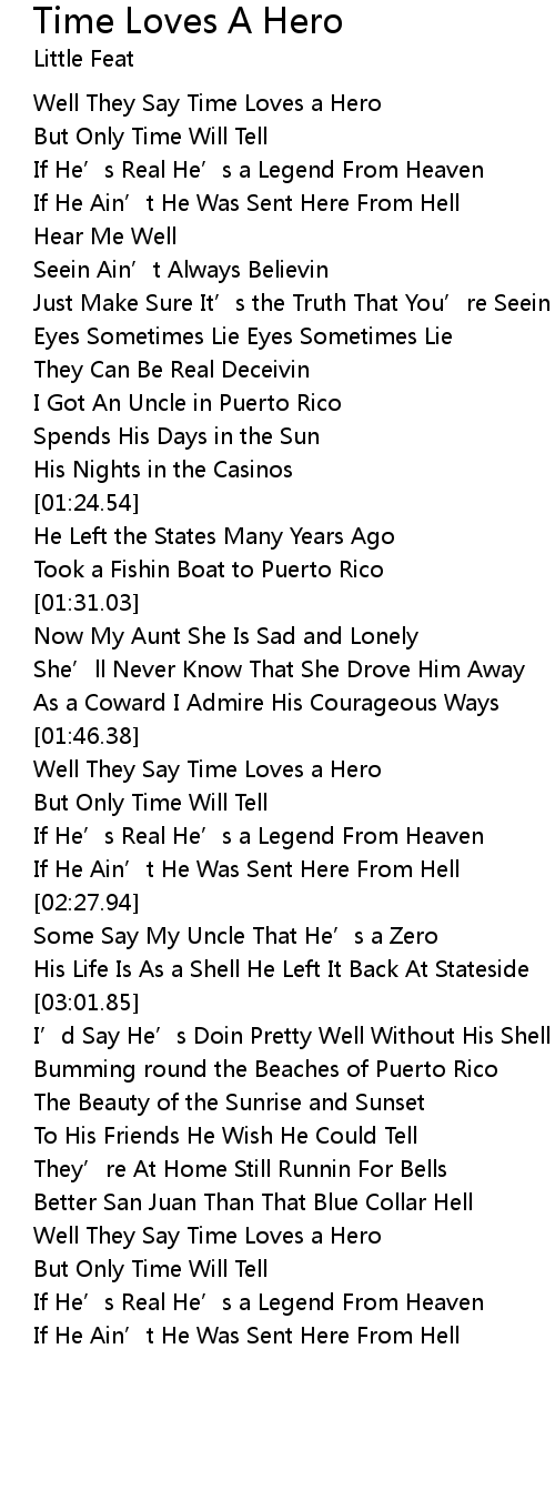 | [01:51.69] | Well They Say Time Loves a Hero |