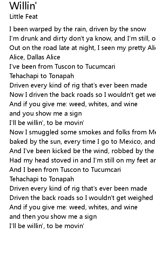 Had my head stoved in and I'm still on my feet and I'm willin', oh I'm willin' |